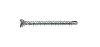Tornillo Zincado brillante, cabeza avellanante punta broca, ranura Phillips #2, rosca Hi Lo. Para fijación en placas de Fibrocemento a estructura de acero galvanizado de espesor 0,85 – 1 mm.